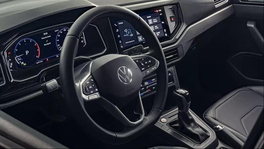 No habitáculo do Polo 2026, o destaque vai para o painel digital nas versões mais completas, central multimídia VW Play com tela de 10,1″, integração para smartphones, carregador por indução em versões selecionadas, e materiais que elevam a sensação de qualidade. As versões mais equipadas trazem volante em couro, bancos com acabamento premium e sistema de som de alta fidelidade — pontos que fazem diferença para um público que busca mais do que apenas mobilidade.