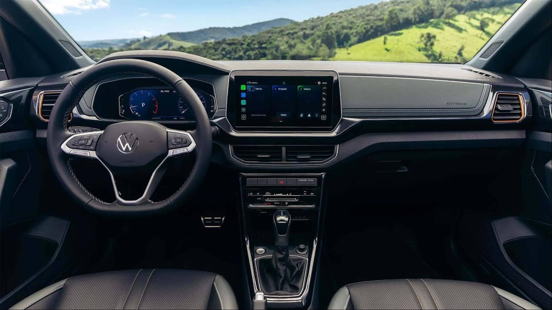 Com esse conjunto, o T-Cross combina o melhor dos dois mundos: baixo consumo de combustível e dirigibilidade divertida — um verdadeiro ponto de equilíbrio entre eficiência e emoção ao volante.